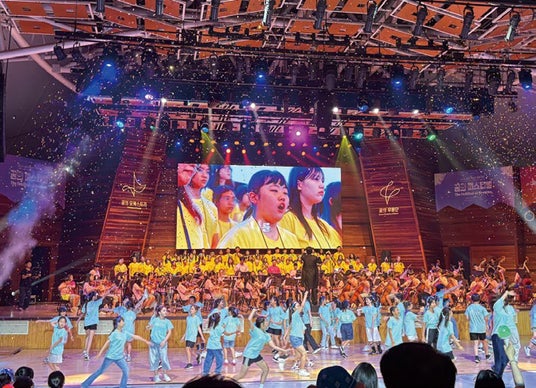 2025年8月、韓国・平昌で開催された韓国政府主催国際交流サマーキャンプにて。韓国、日本、タイ、マレーシアのオーケストラ、合唱、ダンスメンバー総勢200人のフィナーレ