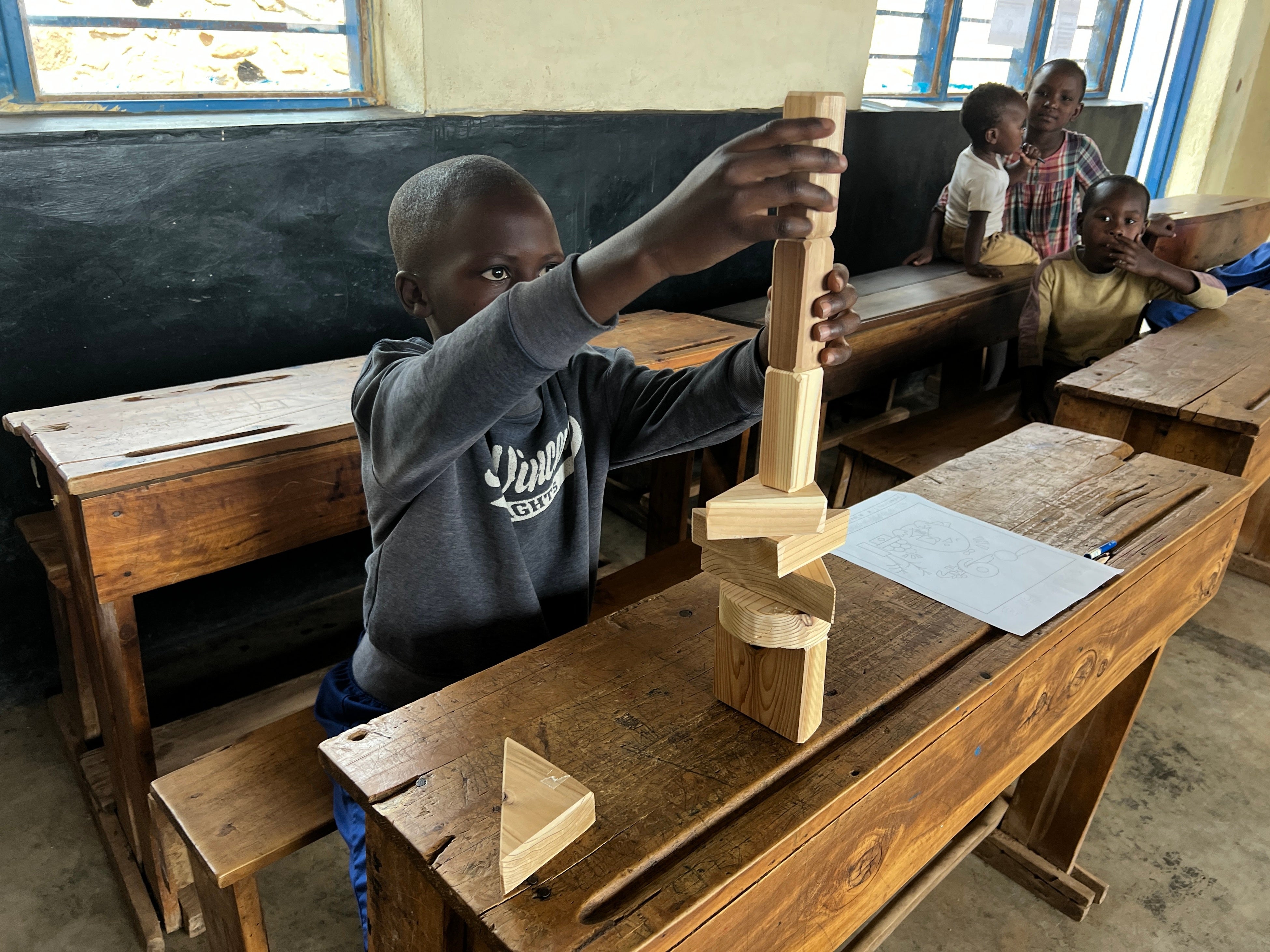 今年8月にアフリカルワンダに届いた木島平中学校制作の積み木