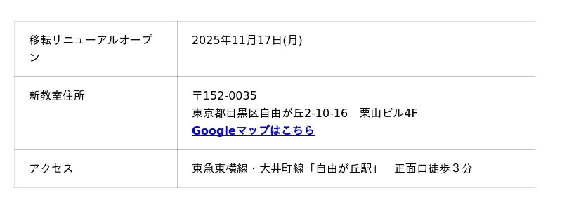 ◼️ 【自由が丘教室限定】移転リニューアル記念キャンペーン