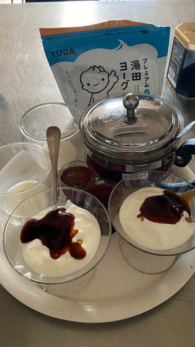 デーツのジャムonヨーグルト、今日の元気、ミルクティ。