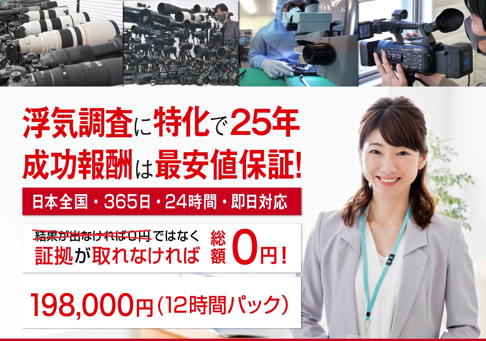 浮気調査に特化した専門調査員が行う最新機材を用いた高品質な調査をより手軽に利用できる内容となっている。