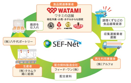 ワタミは、外食事業における食品ロス削減の具体的な事例として、東京都千代田区の「三代目鳥メロ 神田西口駅前店」で実施している食品リサイクルループを紹介しました。同店では、店舗で発生した食品残さを計量・回収し、飼料化したのち、その飼料を食べて育った鶏が生んだ卵を再び店舗で使用するという、“命の循環”の仕組みを構築しています。