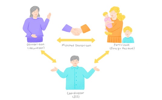 JIIは外国人住民が日本に馴染みやすくすることをミッションに掲げています。2020年に開始した「おとなりさん・ファミリーフレンド・プログラム(OFP)」は、日本人ボランティアと外国人住民が半年間ペアを組み、日常的にサポートや交流するプログラムです。食事やおしゃべり、買い物や子育ての相談など、ささやかな交流を通して“小さな理解”が生まれ、相互理解の芽が育っています。これまでに延べ1,500人以上が参加し、双方から高い満足の声が寄せられています。参加者の体験談はこちらから:外国人参加者、日本人ボランティア