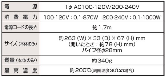 3段階の温度調節/最高温度約200℃ ※周囲温度30℃の場合