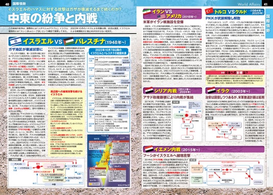 2003年創刊の情報地図帳。世界と日本を取り巻くニュース、情勢について図表や最新のデータを駆使した特集で徹底解説。政治、軍事、産業・経済、環境、社会、文化などの各種テーマも地図や図表でわかりやすく論点を解説しています。昭文社独自の「世界地図」「日本地図」に加え、『世界』には世界遺産や各国要覧、『日本』には県勢一覧も同時収録。地理学習や就活準備に、社会人の学び直しに、テレビや動画を見る際のお伴に、プレゼントに…。さまざまな場面で活躍する、昭文社の大人気シリーズです。
