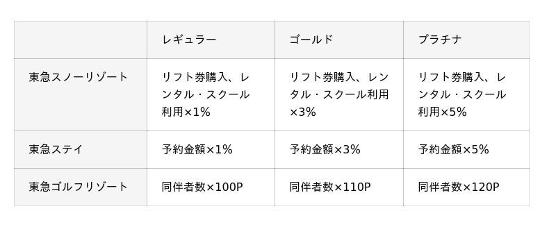 「東急スノーリゾート*」「東急ステイ」「東急ゴルフリゾート*」の各公式予約サイトや、公式予約アプリからのスキー場のチケット購入やレンタル・スクールなどを含むご予約、ご利用につき、会員ステージに応じたポイントを付与※