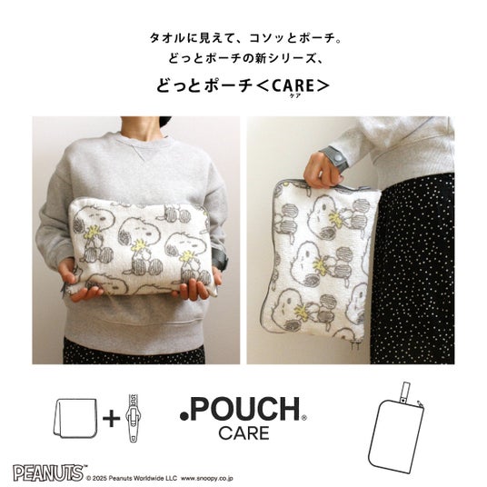 株式会社アイアップ(代表取締役社長:中田理生/所在地:東京都渋谷区)は、タオルのふりしてコソッとポーチでおなじみの「どっとポーチ(.POUCH)」から、お客様からのご要望が多かった“大きめサイズ”の新シリーズ「どっとポーチ ケア スヌーピー」を発売いたします。