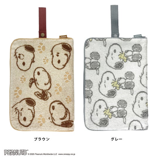 かわいいスヌーピーの総柄デザインは、グレーとブラウンの2色展開。落ち着いたカラーで、幅広い世代の方にお使いいただけます。