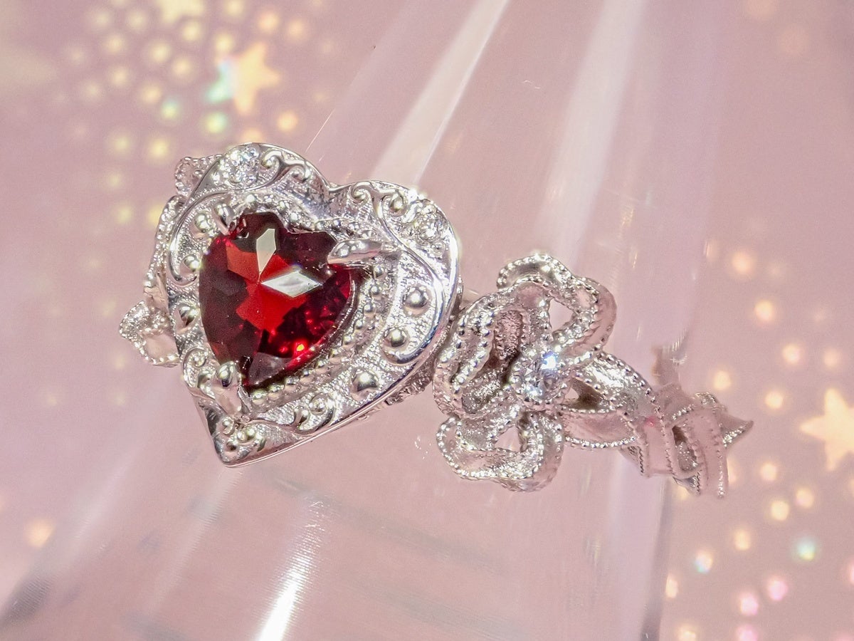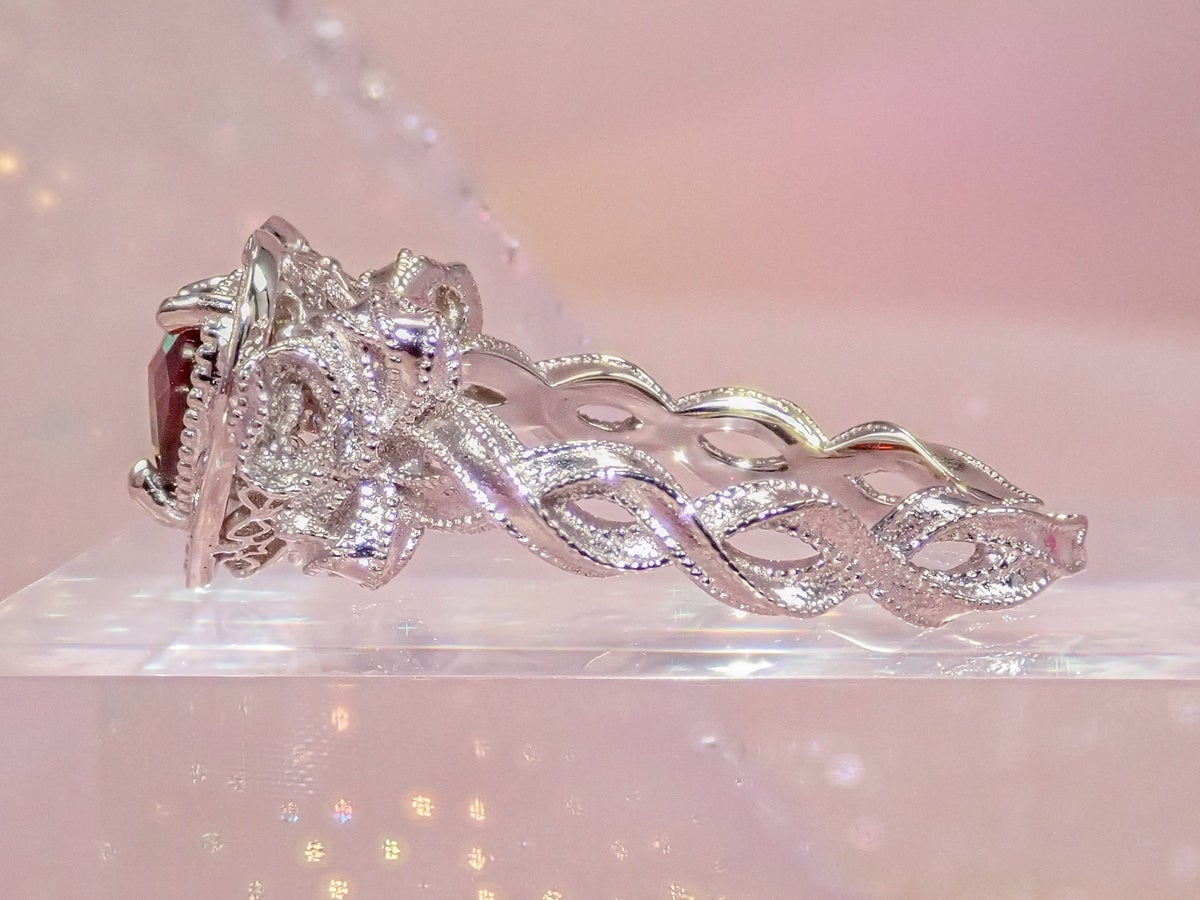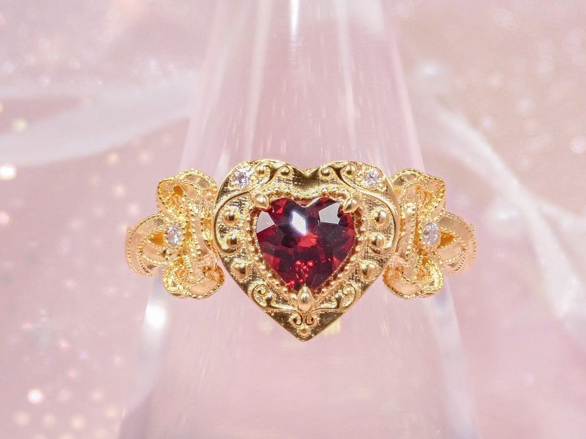 宝石のサイドとアーム部分には少しアレンジを加え、第2弾でも用いたリボンモチーフを。リボンが指に巻き付くかのようなデザインは、上品な中にも可愛らしさが感じられ、乙女心をくすぐります。身につけるだけで気分が上がるような特別なアイテムが出来上がりました。