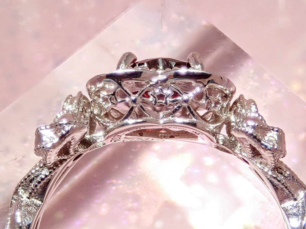 さらに、石座部分は透かし模様を入れた二段腰にし、横からも光を取り込める仕様にしました。星とリボンの柄も入っており、細部まで「カワイイ」が楽しめるのもポイントです。