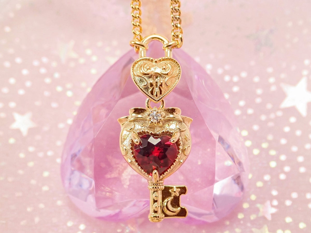 『ハートキーロックペンダント』(シルバーモデル・ゴールドカラー・アルマンディンガーネット)