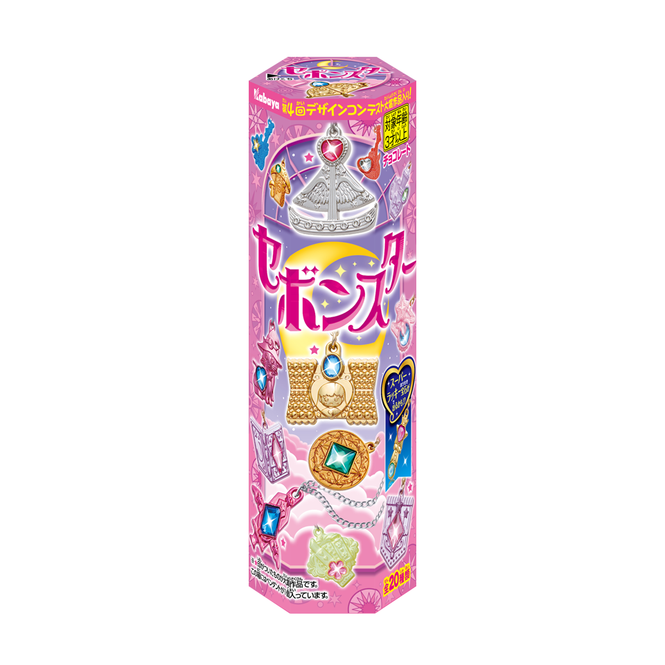 1979年発売以降、ロングセラーとなっているカバヤ食品の女の子向け玩具菓子です。縦長の特徴的な六角形の箱の中には、オリジナルのペンダントアクセサリーとチョコレートが入っており、そのデザインの可愛さと多岐に渡るカラーリングから、「お菓子売り場の宝石」として親しまれています。2024年で発売45周年を迎え、キラキラ好きな女の子に留まらず、大人になった女性たちにまで永く愛され続けている製品です。