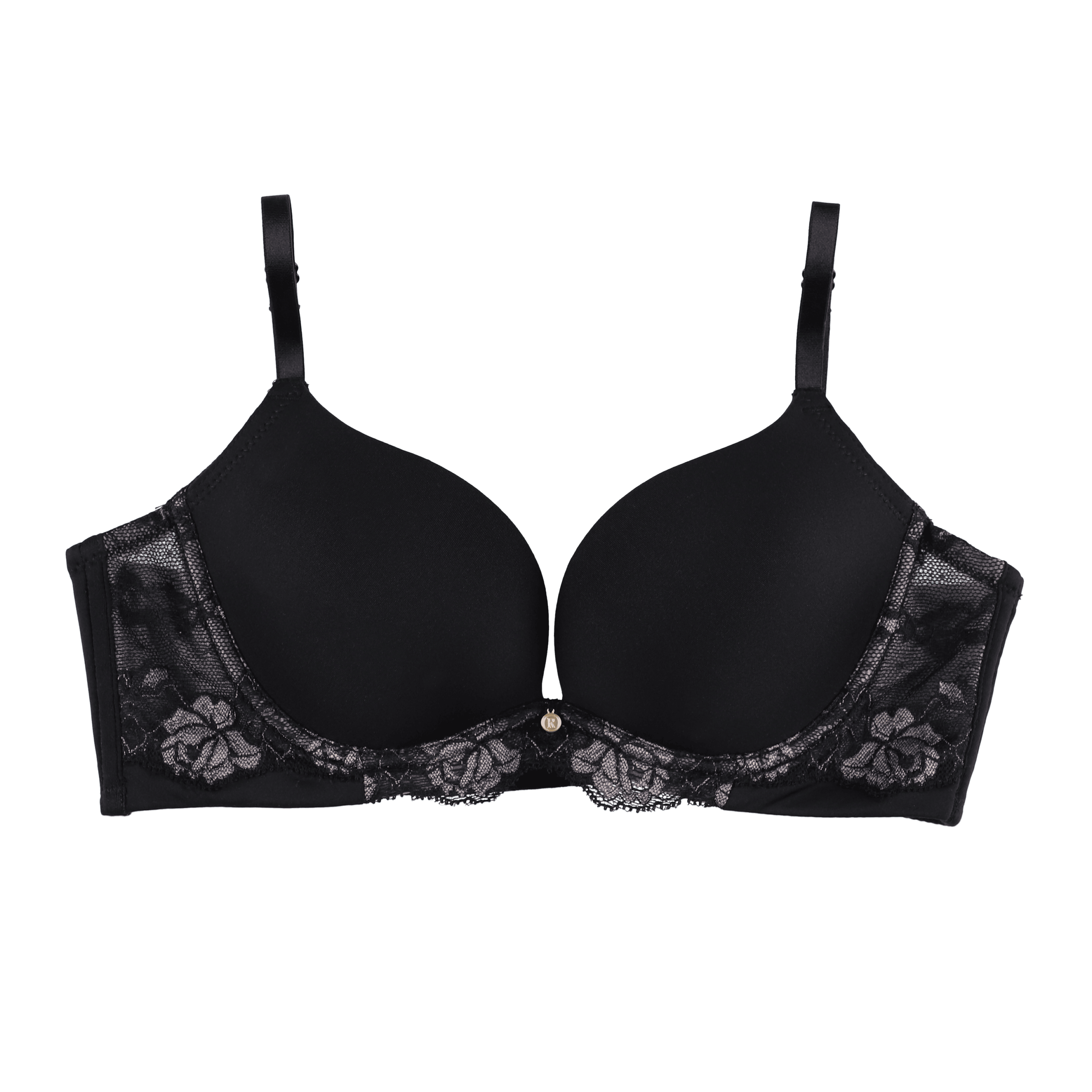 脇高設計で気になる脇肉をバストへと導き、横流れを防いで、すっきりとしたボディシルエットと高さのある美しいバストをメイク。さらに、サイズごとに厚みを変えた独自のモールドカップが、バストに合わせた理想の”まる胸”を実現します。