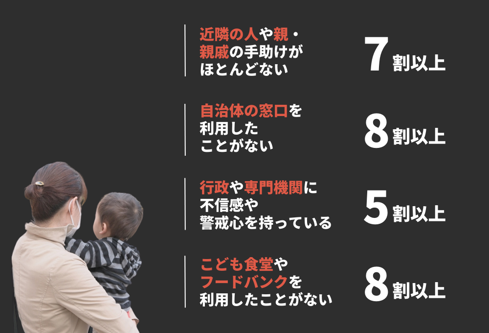 経済的な困窮、心理的な障壁、周囲の偏見など、様々な要因が複雑に絡み合うことで、苦しい状況に置かれていても、誰にも頼ることができず、孤立する親子がいます。