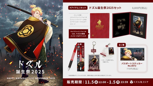 株式会社ドズル(本社:東京都品川区、代表取締役社長:ドズル(YouTuber)、以下、ドズル社)は、ゲーム実況グループ「ドズル社」のメンバー ドズルの誕生日を記念した「ドズル誕生祭2025」グッズを、2025年11月5日(水)12:00よりドズル社ストアにて発売します。