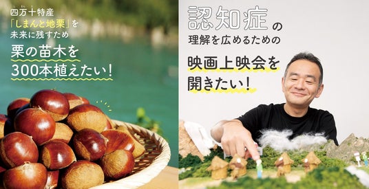 第17弾となる今回の2つのプロジェクトは、「高知県四万十の特産『しまんと地栗』を未来に残すため、300本の苗木を植える地域再生プロジェクト」と「認知症への正しい理解を広めるために制作する映画の上映会を開催するプロジェクト」です。どちらも、今ある課題を希望へ変え、未来へつなぐことを目指した取り組みです。人と地域がともに支え合い、より良い社会をつくるための新しい一歩を、フェリシモメリーファンディングから発信します。