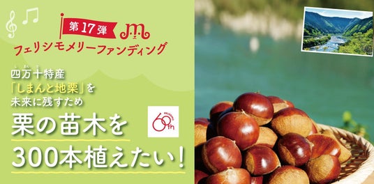 フェリシモメリーファンディングでは、この挑戦を応援するために、フェリシモのお客さまとともに300本の苗木を贈る取り組みを実施します。おいしい「しまんと地栗」を未来へつなぐとともに、この活動が全国の地域課題解決へのモデルケースとなることを目指します。