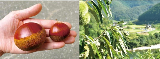 四万十で育つ大粒(左側の大きな栗)で甘くておいしい地栗を、多くの人に味わってもらうことを目指して