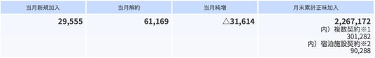 月次の加入件数は、毎月第2営業日に開示予定です。ただし、予期せぬ理由で公表日が急遽変更となる場合がございますので、予めご了承ください。