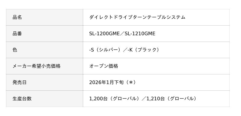 パナソニック株式会社(以下、パナソニック)は、テクニクスブランドのグランドクラスのダイレクトドライブターンテーブルとして、マスターエディション仕様のSL-1200GME/SL-1210GMEを台数限定で2026年1月下旬(*)に発売します。