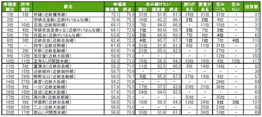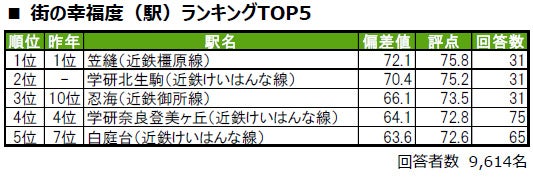 ■街の幸福度(駅)トップは、3年連続で笠縫(かさぬい)