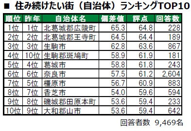 ■住み続けたい街(自治体)トップは、2年連続で北葛城郡広陵町(きたかつらぎぐんこうりょうちょう)