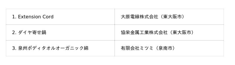 洗練されたデザインと高い機能性が両立した延長コード、発売から約70年変わらぬ形と製法を守り人々から愛され続けるアルミ寄せ鍋、天然繊維の優しさと合成繊維の泡立ちの良さを兼ね備えたボディタオルなど、実用性とデザイン性を兼ね備えた魅力的な製品が揃っています。
