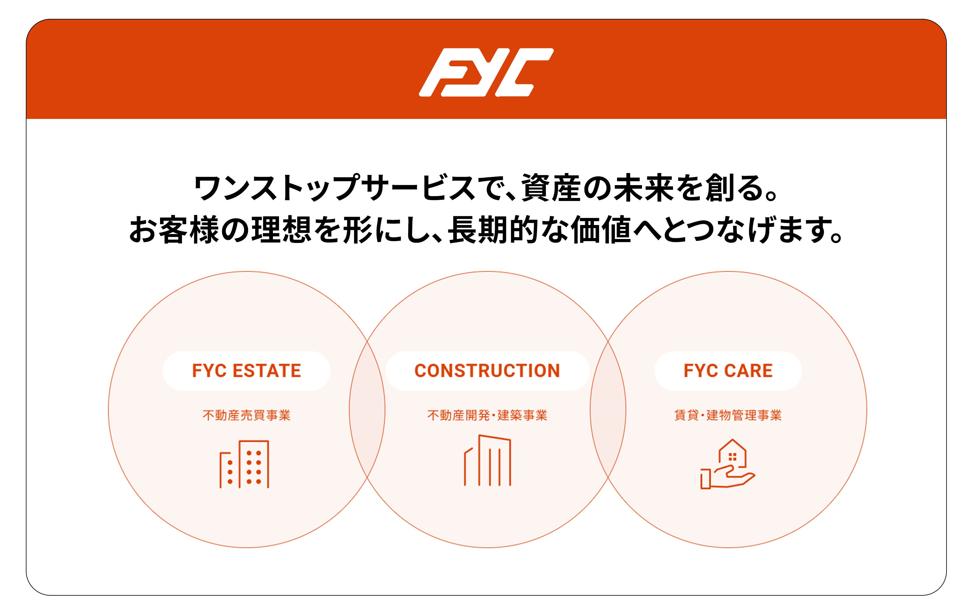 株式会社FYCは、2015年12月1日に設立した東京都品川区西五反田に本社を置く不動産事業を幅広く展開する企業です。同社は「長期的な価値創造にこだわるFYCの使命」を掲げ、単なる不動産サービスの提供に留まらず、お客様の長期的なパートナーとなることを目指しています。