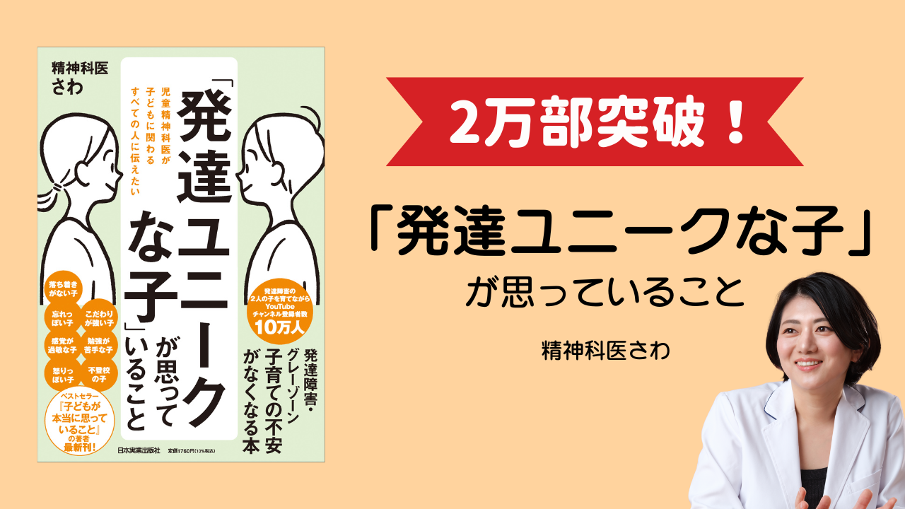 【4刷・累計2万部突破!】児童精神科医さわによる書籍『児童精神科医が子どもに関わるすべての人に伝えたい 「発達ユニークな子」が思っていること』(精神科医さわ著/日本実業出版社)が、発売からわずか2ヶ月で4刷、累計発行部数2万部を突破しました。