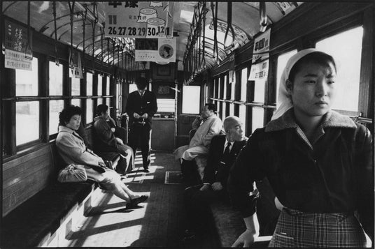 昼過ぎの工業地帯を行く川崎市電(神奈川県)。ひとりの女性にスポットを当て、車内に漂う生活感を捉えた(1959年)。