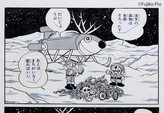 1階「展示室I」に、『ドラえもん』のお話の中から、クリスマスにちなんだお話のまんが原画が登場。「サンタメール」を1話丸ごと原画でお楽しみいただけます(扉絵は除く)。