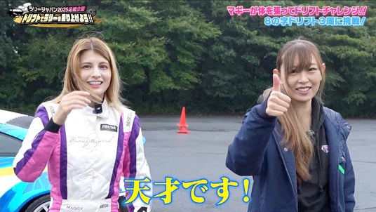 下田さんは「最初でこれは本当にすごい!天才です!」「何がすごいってポイントポイントでアドバイスをするじゃないですか、すぐやるんですよ。それはできますよね」「1発目でこれは超上出来!これすごいことなんですよ?みんなこんなにすぐできないので!」と、マギーの腕前を絶賛しました。マギーは「先生みたいな綺麗な8の字(ドリフト)ではないと思うんですけど…たぶん息してなかった!息が上がっているんですけど(笑)」「めっちゃ楽しい」と手応えを語りました。