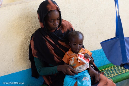 ユニセフ(国連児童基金)および国連食糧農業機関(FAO)と世界食糧計画(WFP)は本日、スーダンにおける食料不安と栄養不良の最新分析を発表。紛争の前線に沿って状況に著しい地域差が生じていることが明らかとなり、警鐘を鳴らしました。暴力行為が沈静化し人道支援のアクセスと市場の回復が可能となった地域では、食料安全保障の状況が改善し始めていますが、紛争の影響を強く受けて、人道支援がほとんど届かない地域あるいは包囲状態にある地域では、すでに飢きんが発生しています。