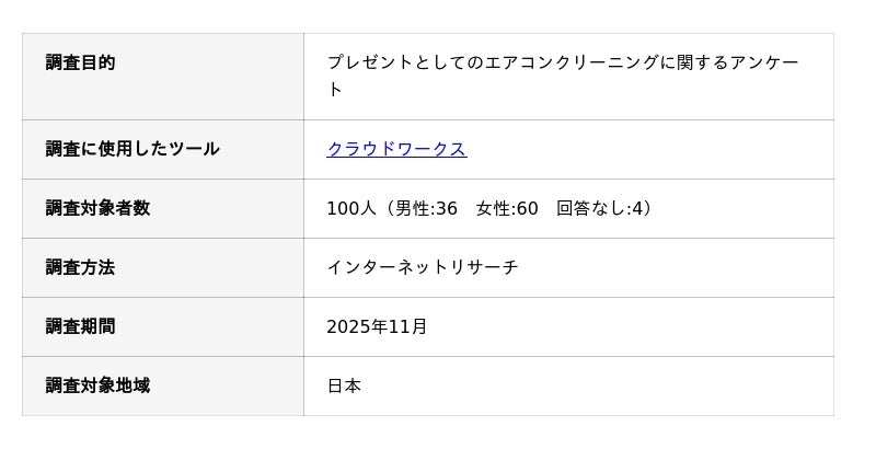 プレゼントとしてのエアコンクリーニングに関するアンケート調査の概要