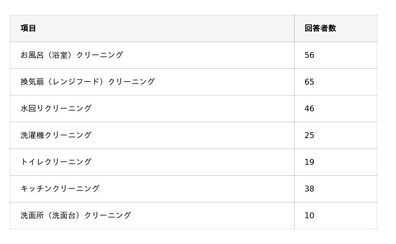 ・他にプレゼントになりそうなクリーニング箇所は「お風呂(浴室)」「換気扇(レンジフード)」。