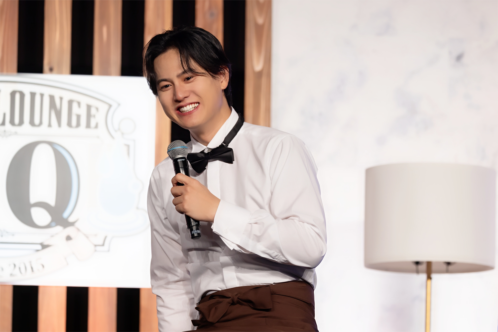 高級ホテルのラウンジをイメージした、オシャレなスタッフ風衣装で登場した江口さん、斉藤さん、花江さん、梅原さん、武内さん、仲村さん、野上さん。「トークラウンジ“SQ(スケア)”へようこそ」と進行を務める斉藤さんの言葉でイベントがスタートしました。