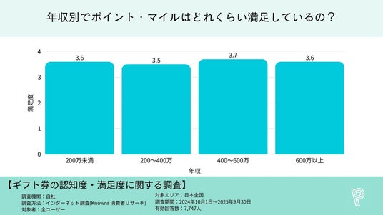 ポイント・マイルの年収別認知度と満足度、ブランド別の満足度を調査