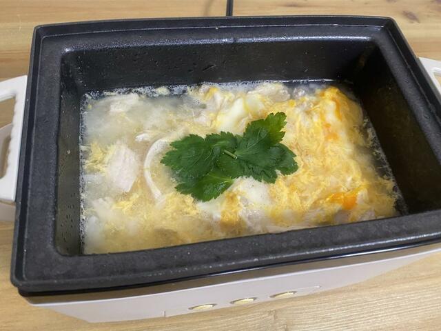 鍋に残ったゆで汁は、鶏雑炊にアレンジ。