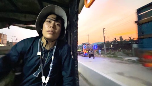 11月2日(日)放送の#6では、バングラデシュ北部の都市・ボグラに移動します。バスターミナルへと向かう中、三輪タクシーで移動していたくるまは、突如表情を曇らせ、「お腹が痛いです」と異変を明かします。「マジで耐えるしかないタイプの腹痛」と苦悶しながらも、なんとかボグラ行きの高速バスに乗ったくるまでしたが、出発直後、大渋滞に巻き込まれるまさかの事態に。まったく動かないバスの車内で地獄の腹痛に耐えるくるまを残し、旅に同行する大前プジョルジョ健太ディレクターは渋滞の原因を探りに降車。渋滞の先頭付近に迫ると、「カメラを下ろせ!」と迫られたり、謎の食べ物を臆せず試食していきます。