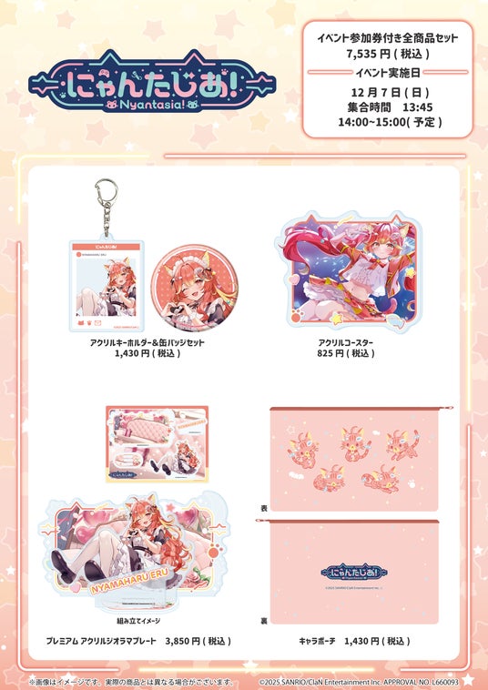 2025年11月5日18:00~2025年12月7日15:00までの先行受注期間中に通販サイト「サンリオアニメストアONLINE」でイベント参加券付き全商品セットをご購入いただいた方には、2025年12月7日(日)14:00~15:00に「サンリオアニメストア 池袋P'PARCO店」で開催予定の特別イベントへご参加いただけます。