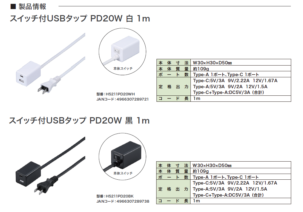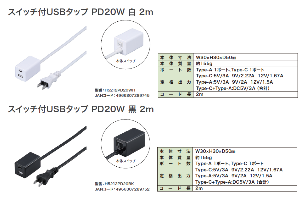 ●Type-CポートはPD(パワーデリバリー)20W対応なのでタブレットなどを超速充電できます。