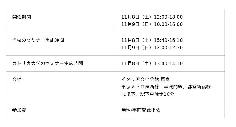 当校はカトリカ大学の公認事務局として、カトリカ大学の個別ブース及び大学紹介セミナーを実施します。