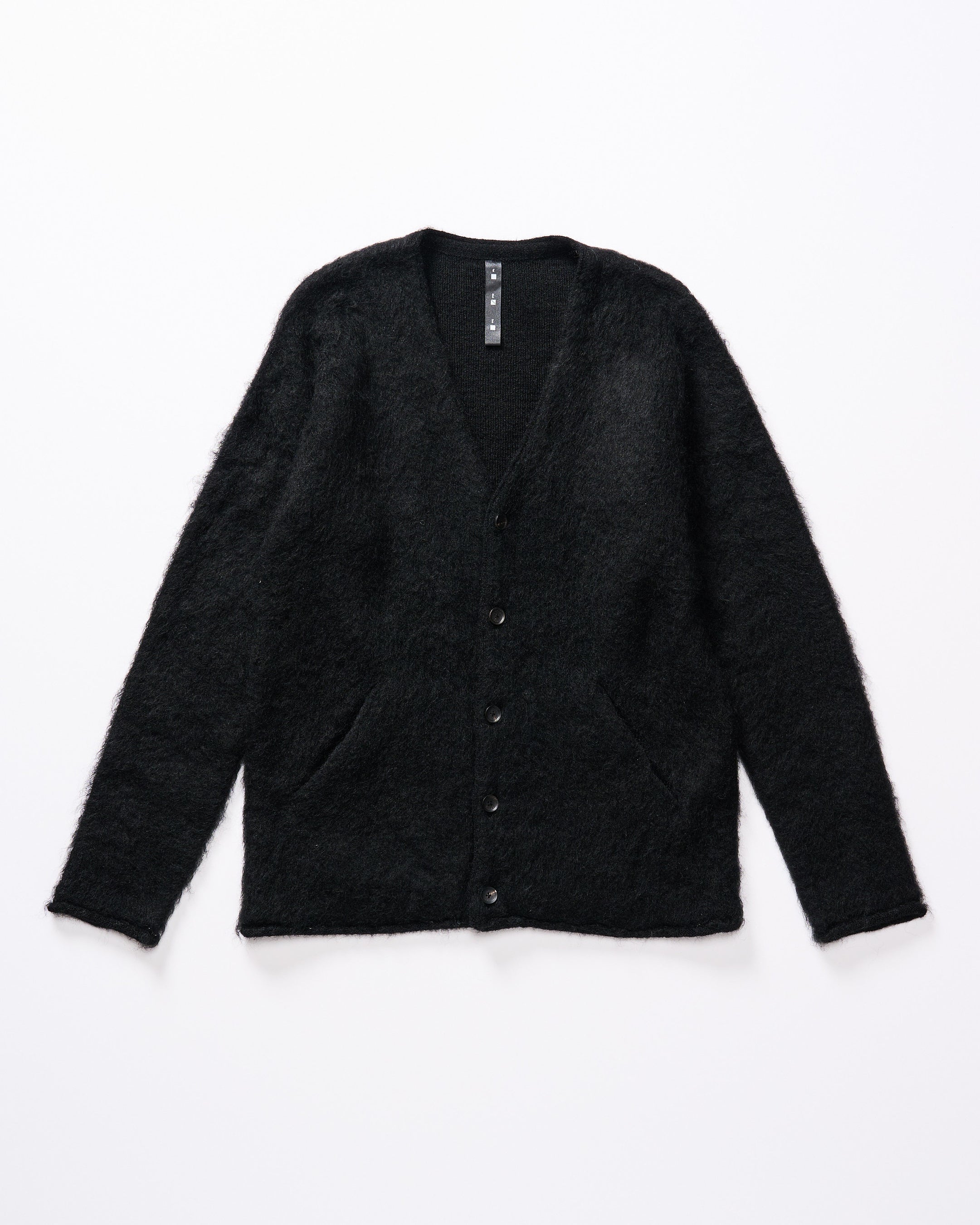 絹のような上品な光沢とハリ、コシのある柔らかな風合いが特徴の28マイクロンのモヘア糸を使用したモヘアカーディガン。希少なアンゴラ山羊からとれるモヘアは、弾力に富んでおり、毛玉ができにくく摩耗しにくいといった利便性も兼ね備えている。