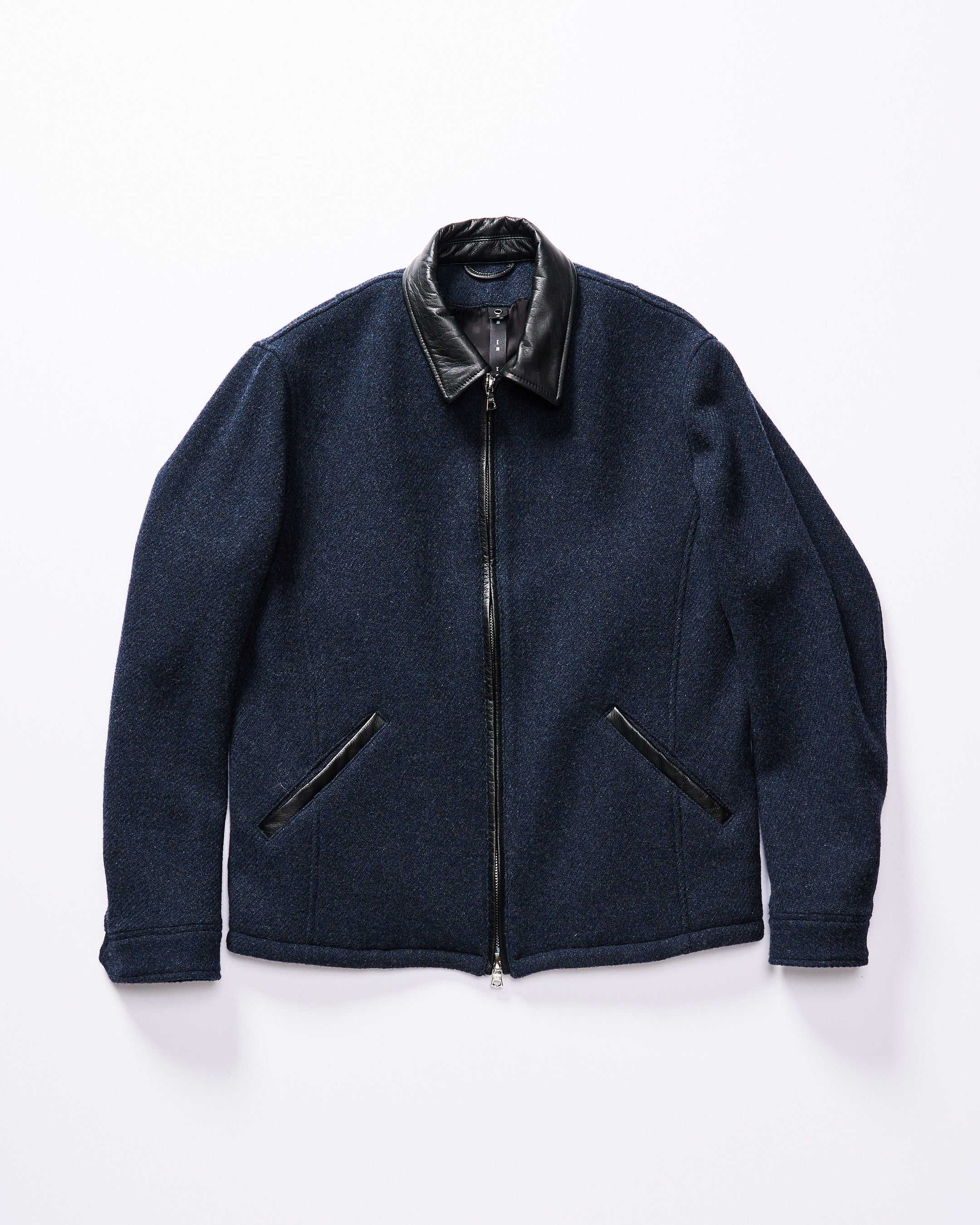 ヴィンテージのスポーツジャケットをベースに、独自のパターンメイクにより洗練された印象を与えるジップブルゾン。上品な印象を与えるツイード素材だが、ディテールに凝ることで差別化を図った一着。