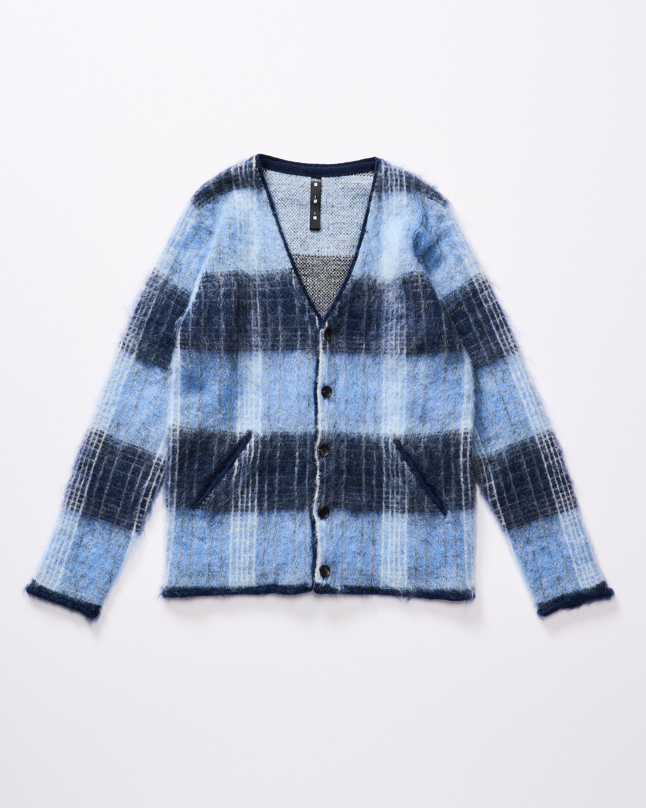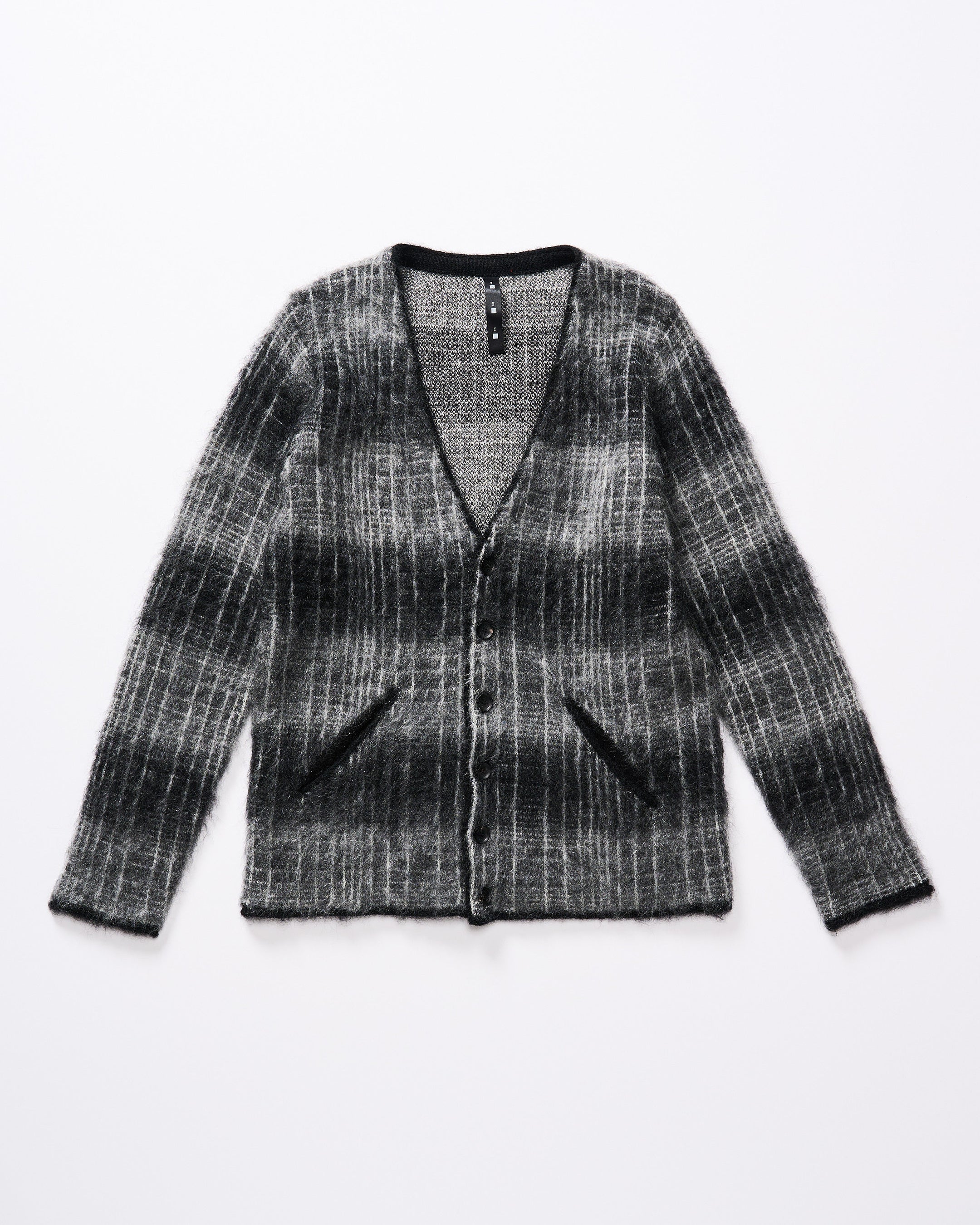 【mohair shaggy knit cardigan】色展開:blue check/black check/all black ¥44,000-
