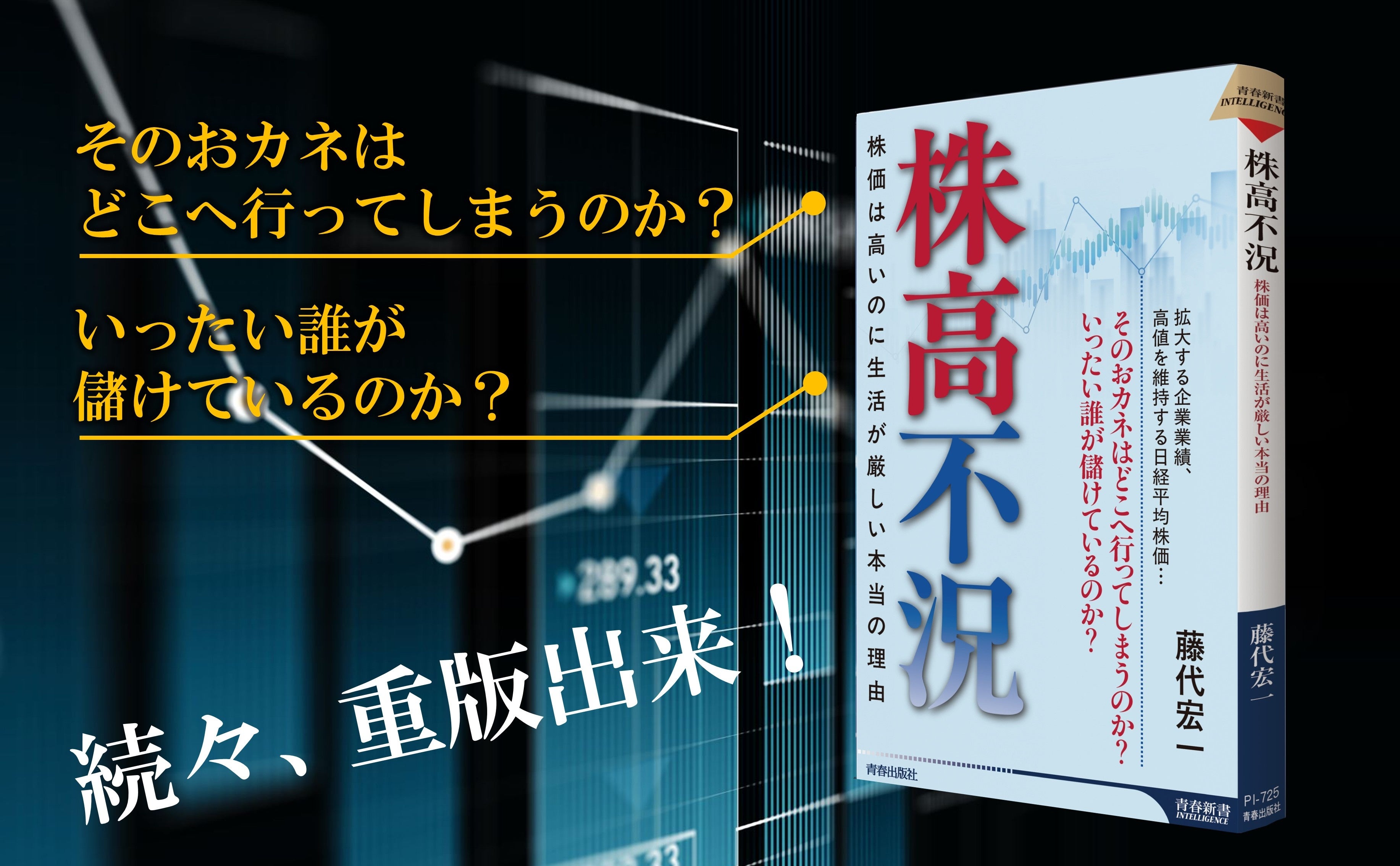 現在の「株高不況」の真因と、生活者ができるその対応策を、気鋭のエコノミストが鋭く、かつ、わかりやすく解説した藤代宏一氏の著書『株高不況』(青春出版社)が、続々重版中!