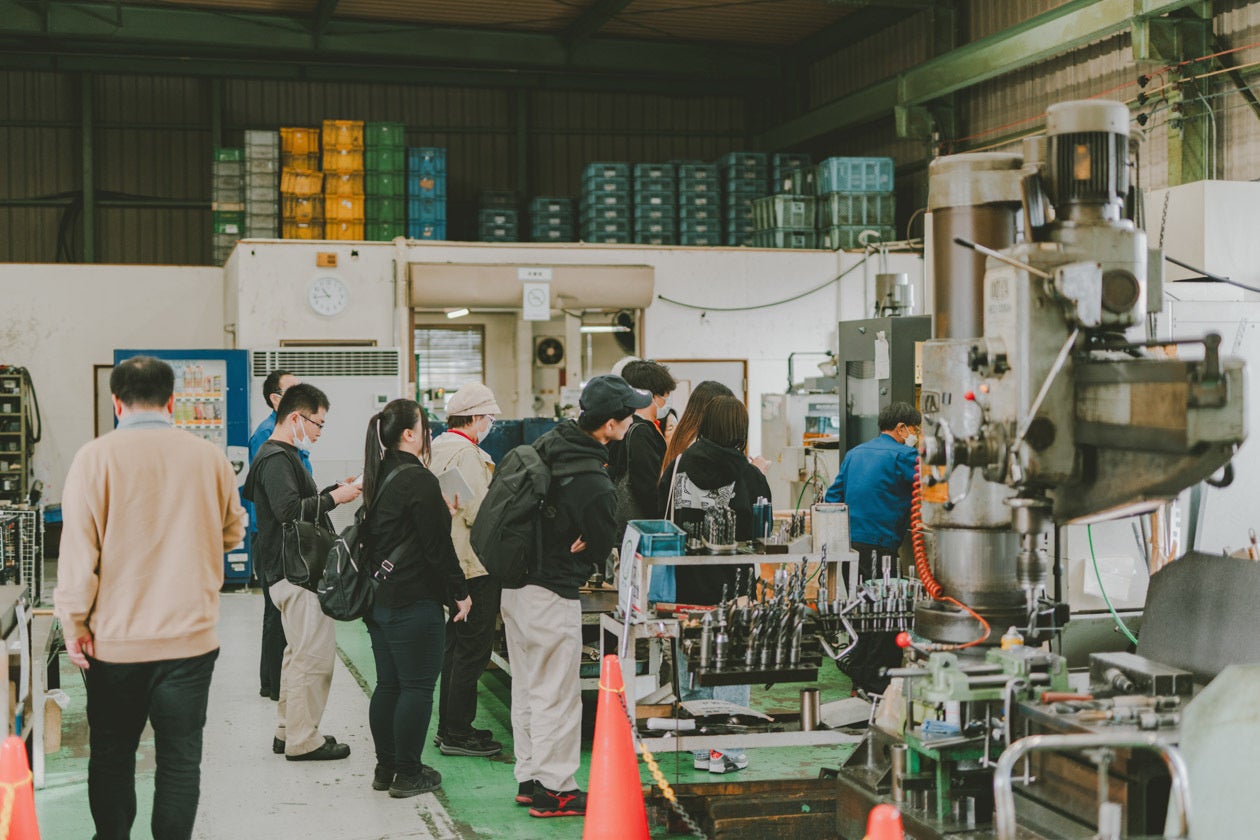 工場見学:経営者や職人の案内による、工場の迫力ある機械や職人の技の見学ワークショップ:工場で実際に行われている作業や工場の製品を使ったものづくりの体験