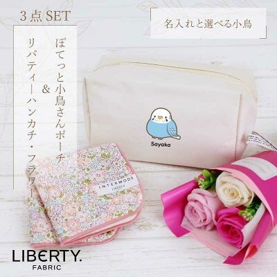 ぽてっと かわいい シマエナガ や 文鳥 セキセイインコ などの 小鳥 デザイン ポーチ と ハンカチ タオル ブーケ の もらって嬉しいギフト セット