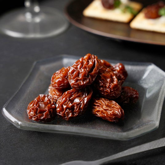 口に含むと、しっとりとした果肉の弾力とともに、濃厚な甘みと爽やかな酸味が広がります。ほのかなマスカットの香りが心地よく、後味にはやさしい余韻が残ります。そのままはもちろん、白ワインやスパークリングワイン、日本酒、紅茶などとの相性も良く、チーズやナッツを添えたアペリティフにも最適。贈答品や特別な日の一品としてもおすすめです。