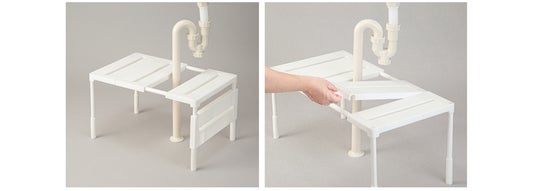 また排水トラップの位置に合わせて棚板の配置を変更できるため、設置の自由度が高く、死角スペースを有効活用できます。工具不要で簡単に組み立て・調整が可能。引越しなど設置場所の変更時にも柔軟に対応できます。